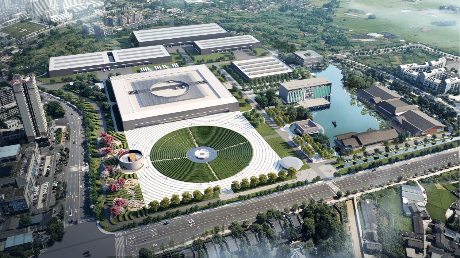 竹叶青意图将“禅茶一味” 的精神体现在整个园区设计中,我们用简单的设计演绎禅意的场所精神。秉持对城市友好开放的创新理念,将工业旅游与茶文化体验融合。这座园区既是工厂,同时也是个大公园。