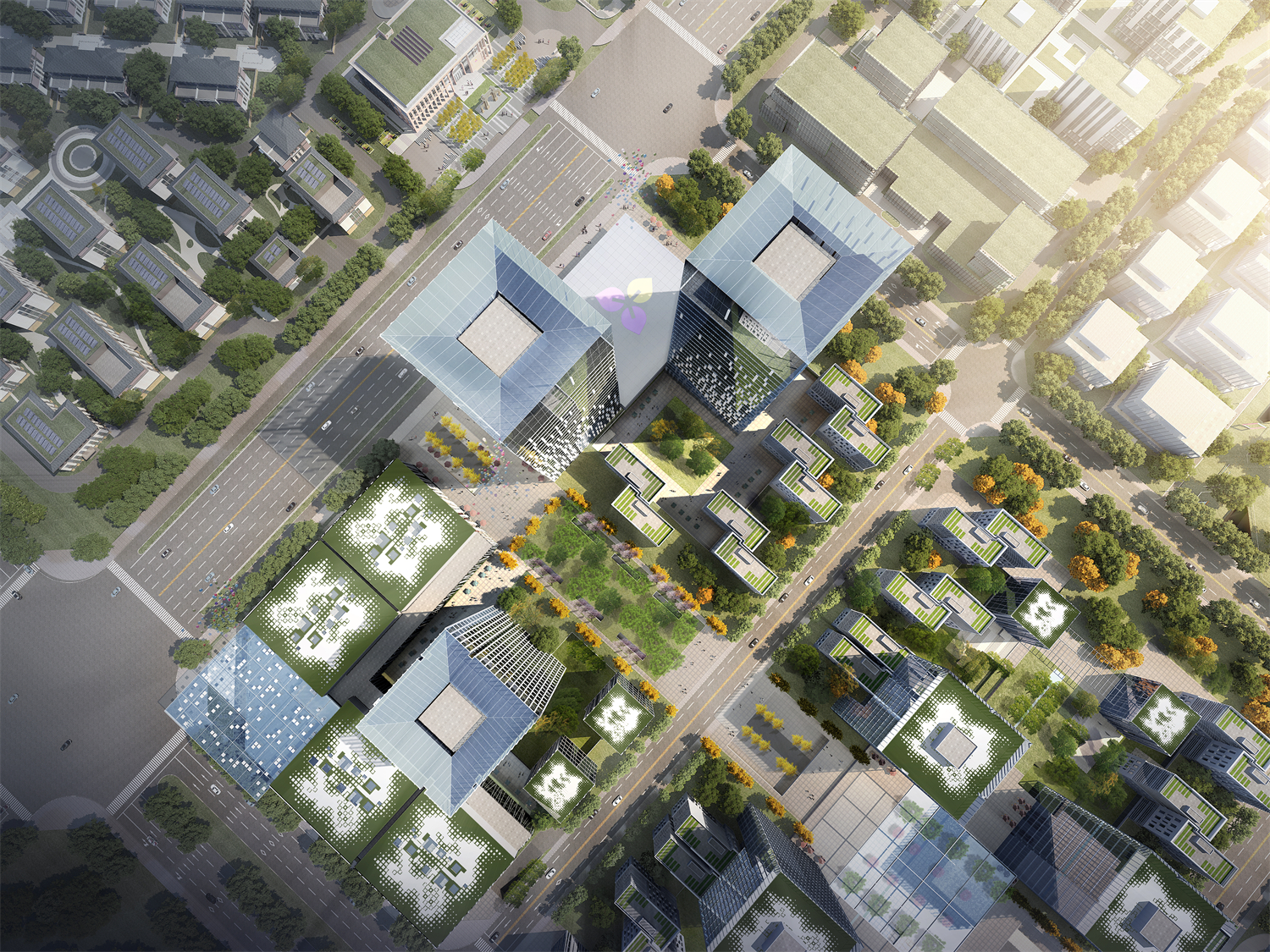 The central axis of Tsinghua and the central axis of natural culture were connected in a Tus Square, and the overall landmark building was placed in the southwest to share the western landscape.