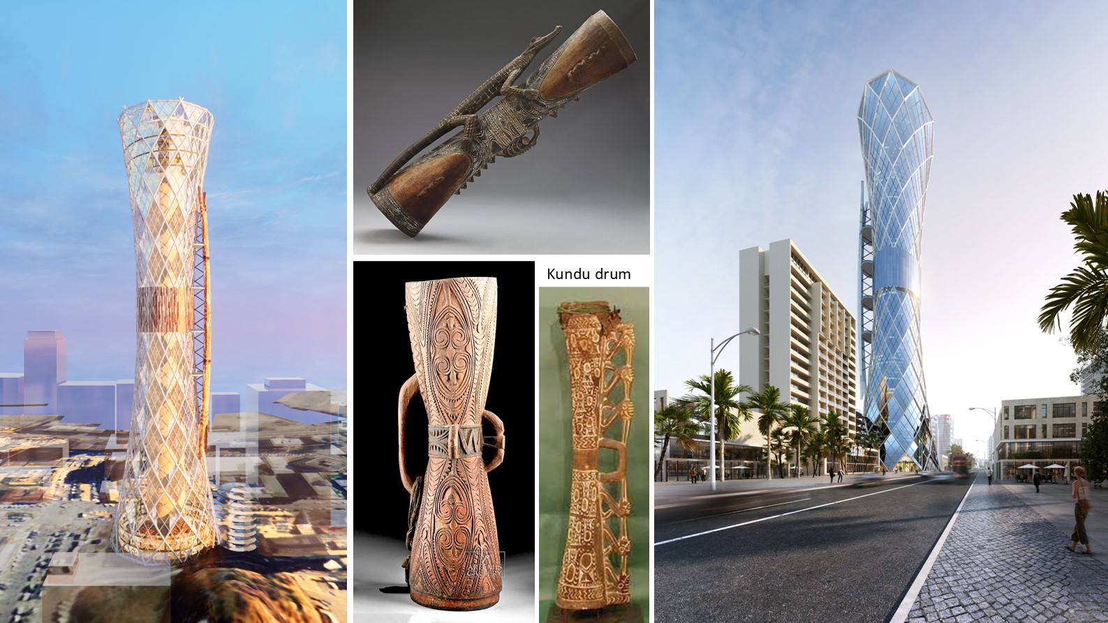 The Kundu Project is a tower project built on the port Moresby of Papua New Guinea. It is designed symbolically with the motif of a traditional instrument, a drum. The curtain wall system is decorated with a traditional pattern, Tapa, to harmoniously combine tradition and modernity.