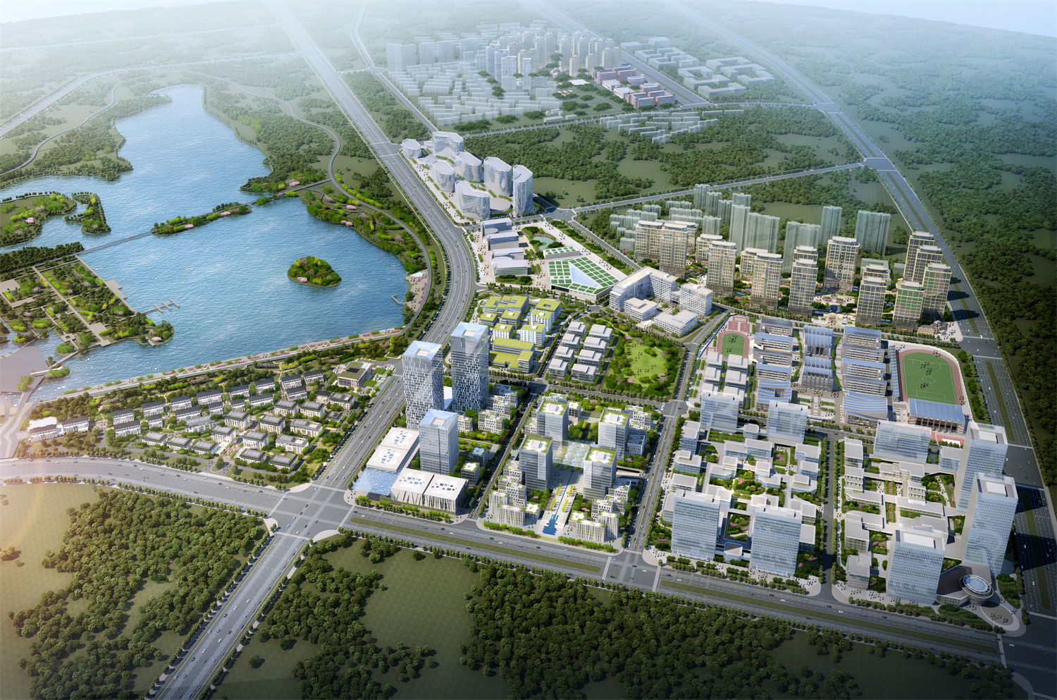 The central axis of Tsinghua and the central axis of natural culture were connected in a Tus Square, and the overall landmark building was placed in the southwest to share the western landscape.